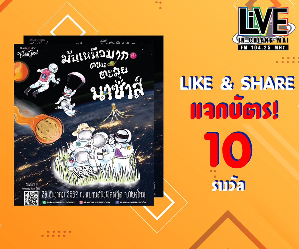 ไลฟ์เอฟเอ็ม 104.25 เชียงใหม่ แจกบัตรคนเสิร์ตมันเหนือมาก ตอนตะลุยนาซ่าส์ วันเสาร์ ที่ 28 ธ.ค.นี้ ที่แบรนด์นิวฟิลด์กู๊ด อ.หางดง พบกั...