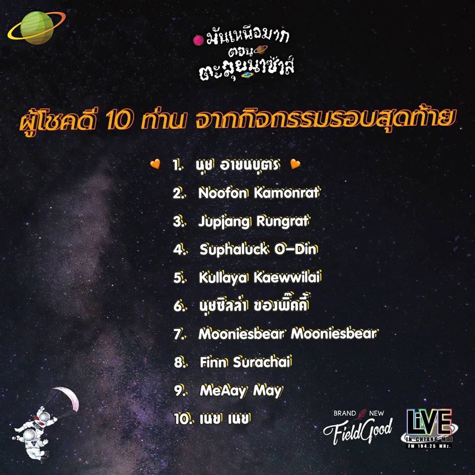 ประกาศรายชื่อผู้โชคดีรับบัตรคอนเสิร์ตมันเหนือมาก ตอนตะลุยนาซ่าส์ วันเสาร์ ที่ 28 ธ.ค.นี้ ที่แบรนด์นิวฟิลด์กู๊ด อ.หางดง รอบสุดท้าย ...