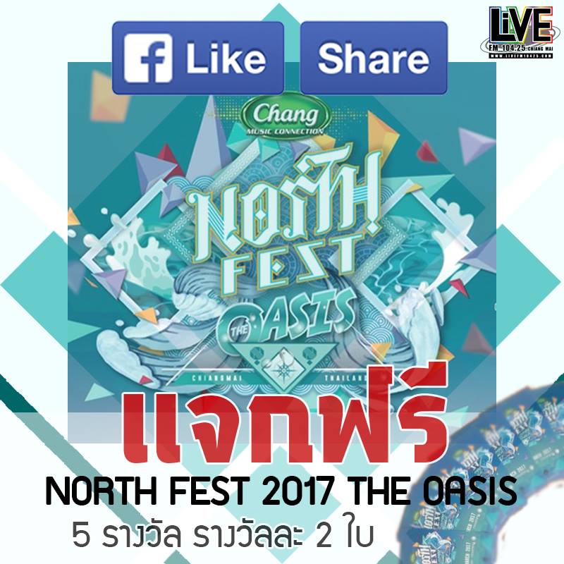 ประกาศรายชื่อชาวไลฟ์ผู้โชคดีที่ร่วมสนุกกิจกรรมแจกบัตร North Fest The Oasis 2017 จำนวน 5 รางวัลๆ ละ 2 ใบ ผู้โชคดีชาวไลฟ์ ได้แก่ 1.K...