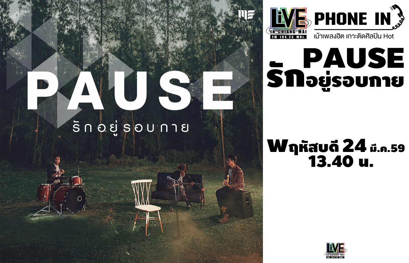 เม้าเพลงฮิต เกาะติดศิลปินฮอต เปิดไมค์ต้อนรับศิลปินวง "PAUSE" ย้อนกลับไปคืนวันที่ 20 ก.พ.45 วันเวลาผ่านไป จากสิ่งที่ยากจะเป็นไปได้ ...