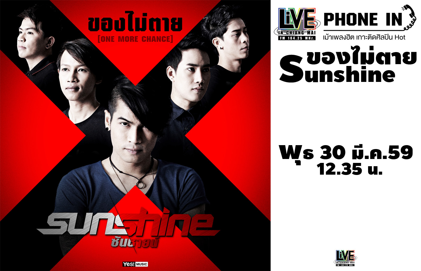 เม้าเพลงฮิต เกาะติดศิลปินฮอต เปิดไมค์ต้อนรับ 5 หนุ่มร็อกฝีมือดีจากเพชรบูรณ์ "Sunshine" มาพร้อมกับซิงเกิ้ลใหม่ "ของไม่ตาย" เพลงร็อก...