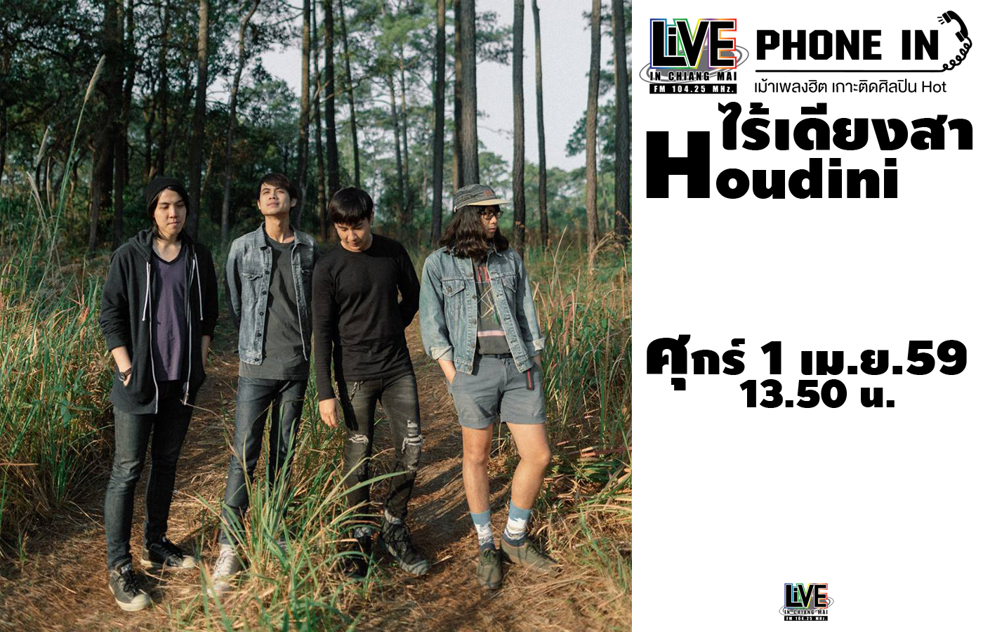 Live Phone In เม้าเพลงฮิต เกาะติดศิลปินฮอต เปิดไมค์ต้อนรับกลุ่มศิลปิน "Houdini" กลุ่มเพื่อนที่รวมตัวกันเพื่อสร้างสรรค์ดนตรี Altern...