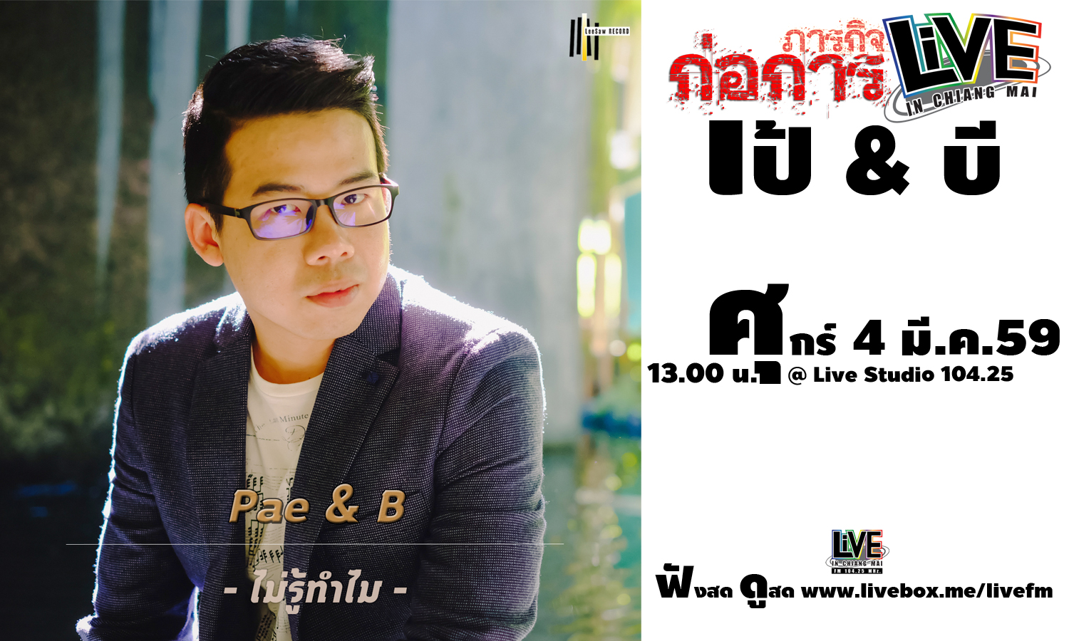 ภารกิจก่อการ Live 4 มี.ค.59 นี้ เปิดบ้านต้อนรับศิลปิน "เป้ & บี" นักร้องคู่ ผู้เป็นตัวแทนเสียงของความรัก ทุกบทเพลงที่มาจากพวกเ...