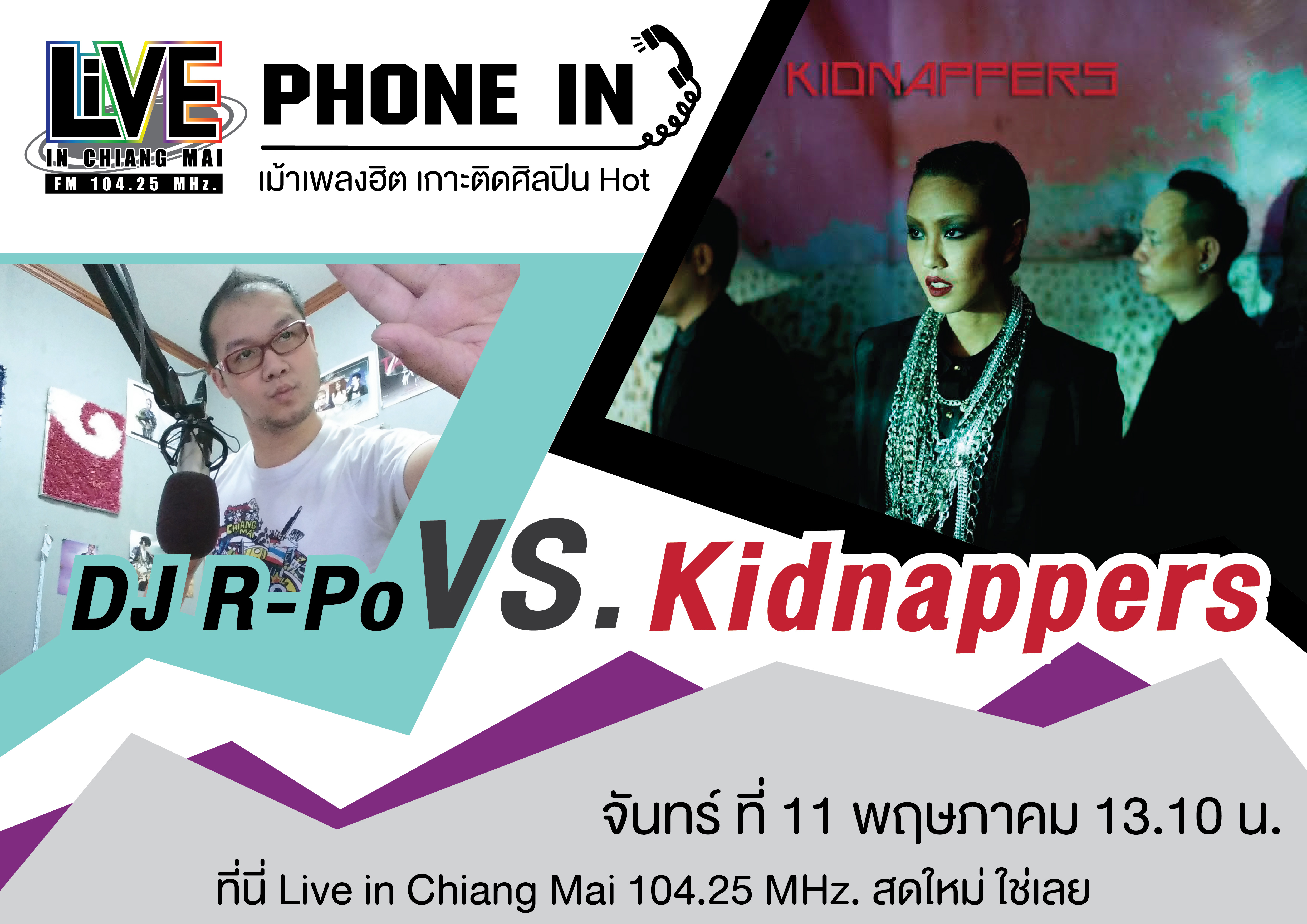 ติดตามบรรยากาศ Live Phone In เม้าเพลงฮืิต เกาะติดศิลปินฮอต ย้อนหลังได้ สัปดาห์นี้เปิดบ้านต้อนรับศิลปิน "Kidnappers (คิดแน็ปเปอร์ส)...