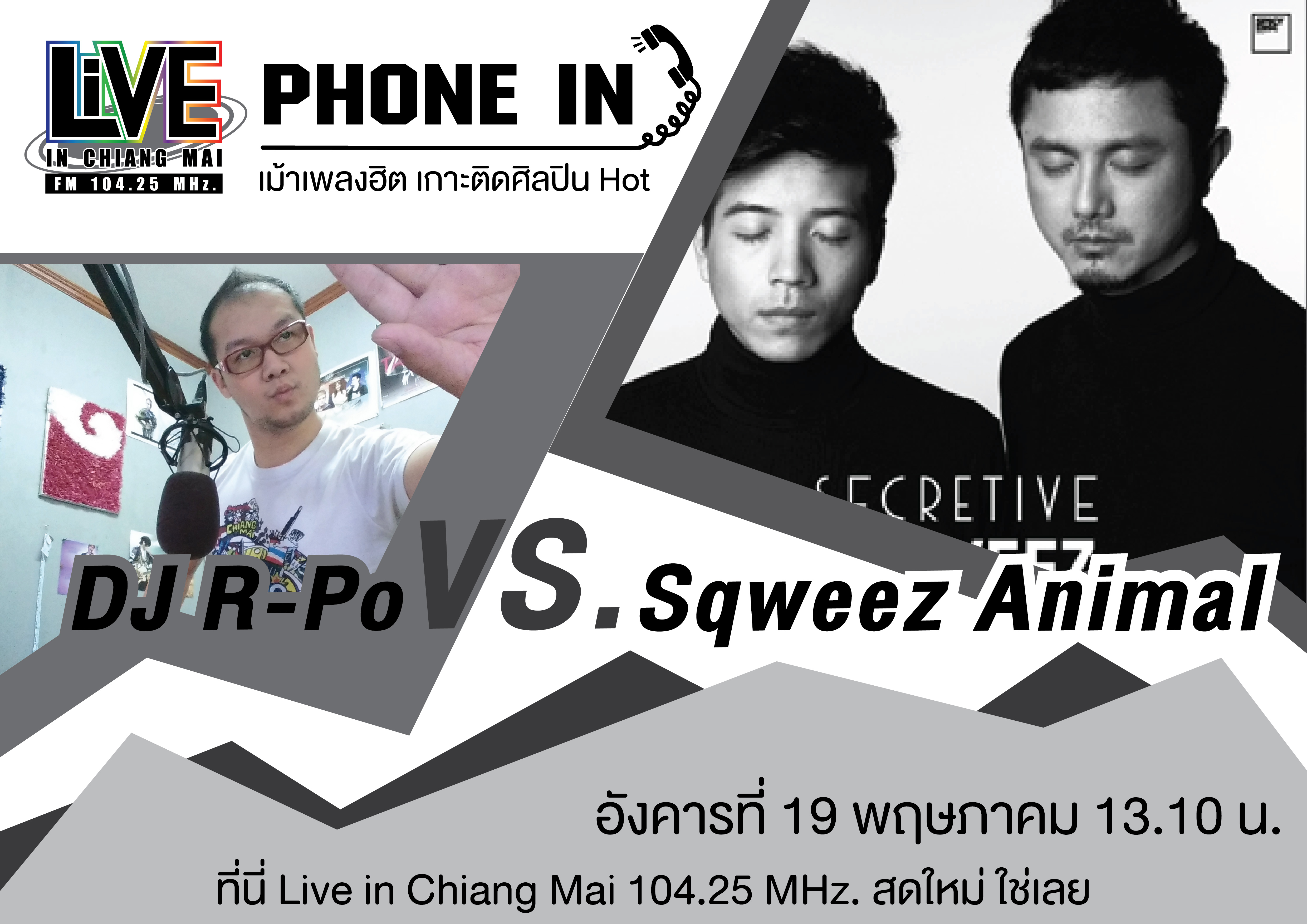 Live Phone In เม้าเพลงฮิืต เกาะติดศิลปินฮอต วันนี้ต้อนรับ "Sqweez Animal" ดูโอสุดชิคอย่าง "วิน ศิริวงศ์" และ "สิงห์ มุกสิกพงศ์" สม...