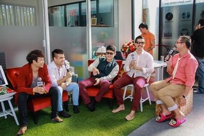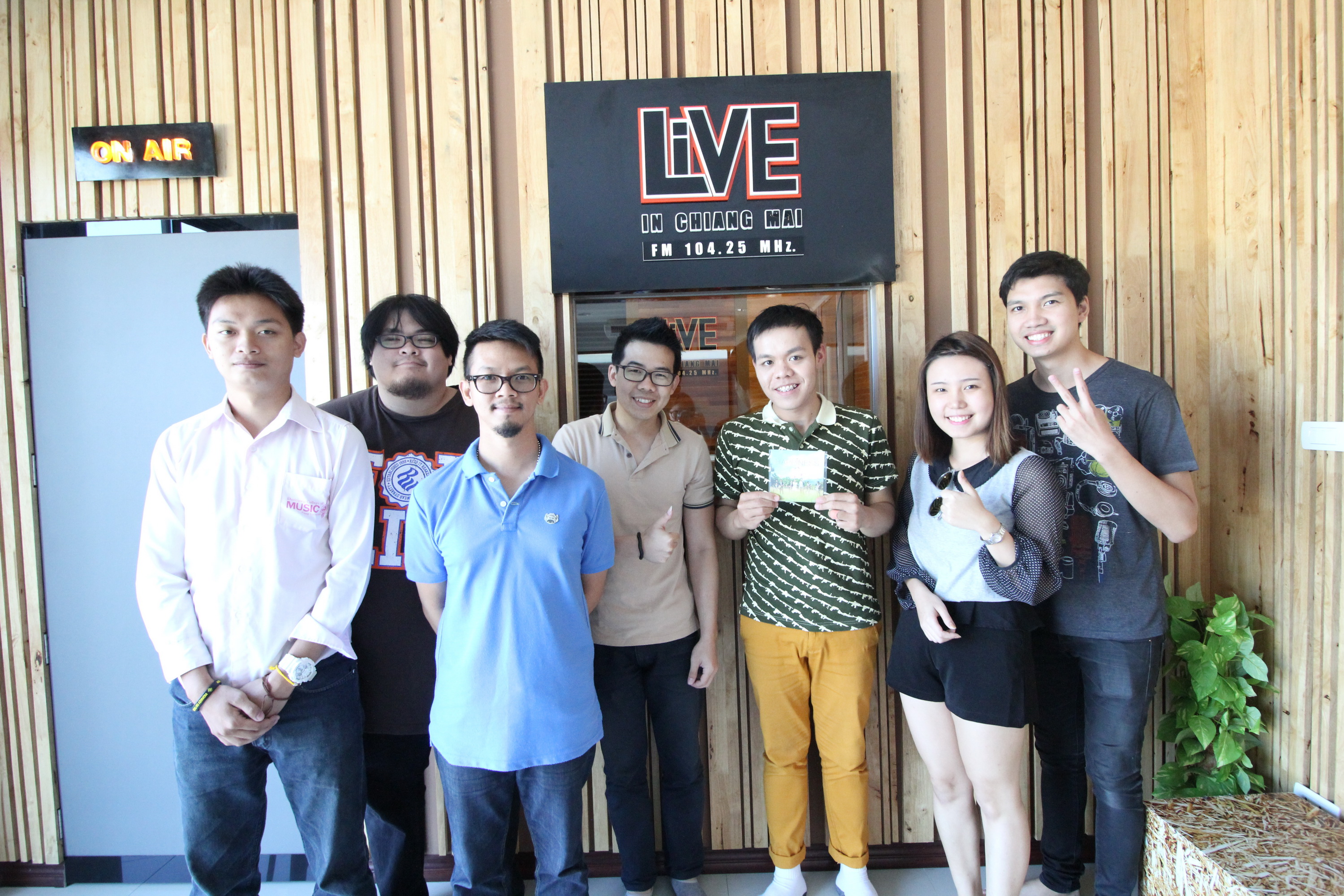 บรรยากาศการสัมภาษณ์สดศิลปิน Slot Machine เมื่อวันที่ 22 พฤษภาคม 2557 พร้อมฝากซิงเกิ้ลใหม่ "มีคนคิดถึงเธอ" ที่สตูดิโอ Live in Chian...