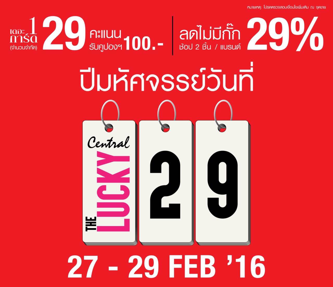 ห้างเซ็นทรัลชวนช้อปฯ ปีมหัศจรรย์ จัดรายการ "Central The Lucky 29" พบกับสินค้ากว่าหนึ่งล้านชิ้น ลดทั้งห้าง ทุกชั้น ทุกแผนก ลด 29% เ...